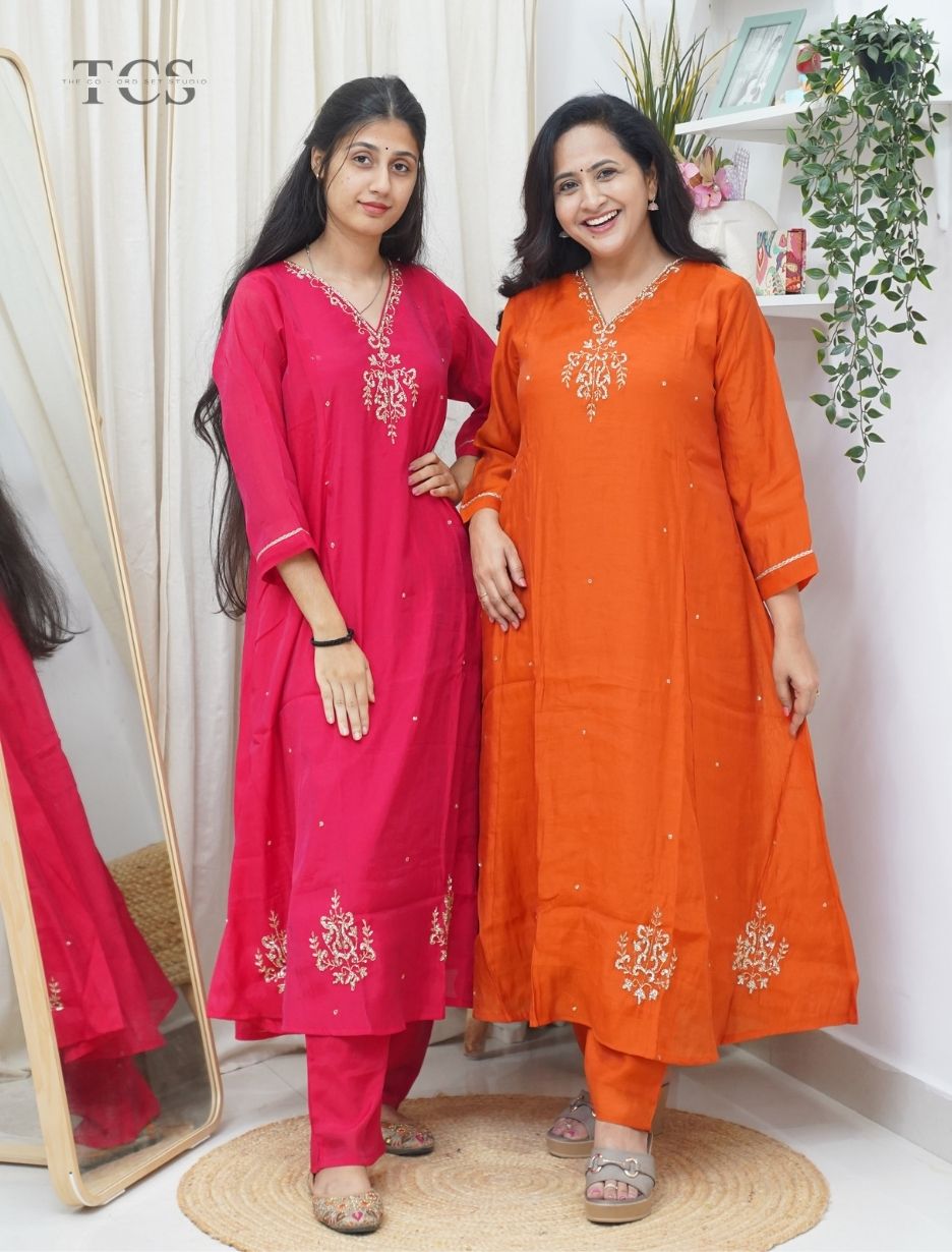 The Chinnon Embroidered Kurta Set is designed to bring together grace, comfort, and festive charm. Crafted in soft and flowy chinnon fabric, the kurta features elegant embroidery that adds a refined ethnic appeal. The lightweight texture and flattering silhouette make it perfect for festive occasions, celebrations, and special gatherings.