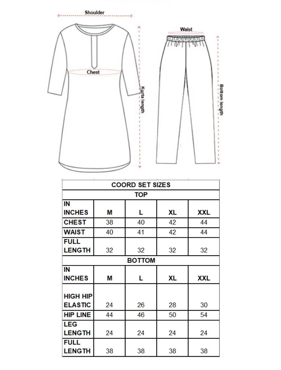 The Aarohi Embroidered Cotton Co-ord Set is a perfect blend of comfort, functionality, and contemporary ethnic style. Crafted from breathable cotton fabric, this co-ord set is designed for all-day wear while keeping the look refined and graceful. The kurta features intricate thread embroidery on the front, enhanced with two fully functional designer pockets that add both utility and style. The front buttons are functional, making the kurta easy to wear, while additional buttons are decorative, adding to the overall design appeal. A structured collar neck and three-quarter sleeves give the outfit a smart, modern silhouette. Paired with a matching cotton pant featuring a full elasticated waistband, this co-ord set offers a relaxed yet flattering fit. With no lining, the outfit remains lightweight and ideal for daily wear, office wear, casual outings, and relaxed festive moments. Available in Peacock Blue, Lilac, and Black, this versatile co-ord set is a must-have addition to any contemporary ethnic wardrobe.