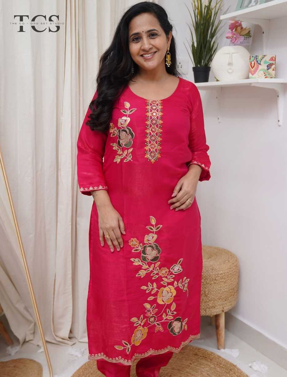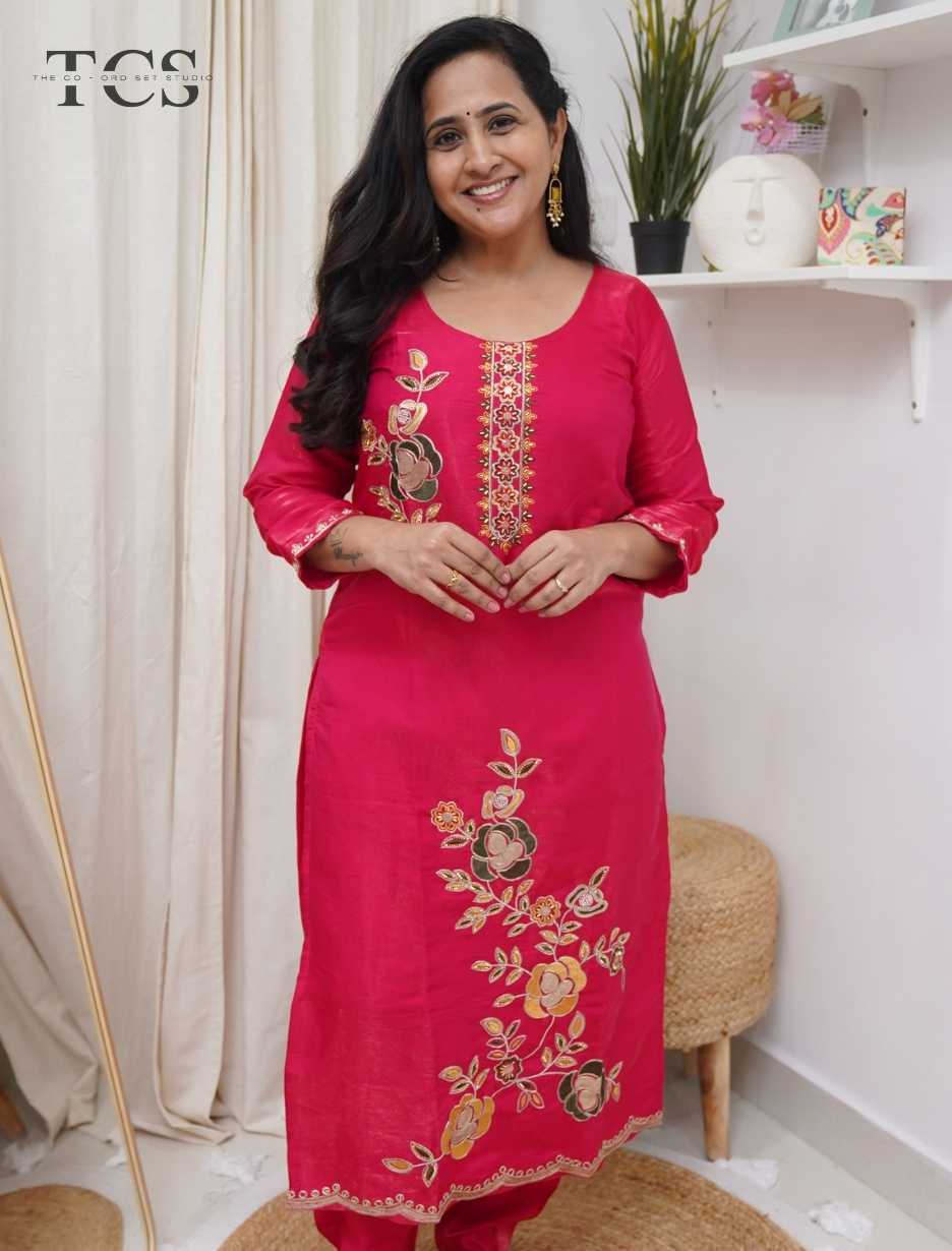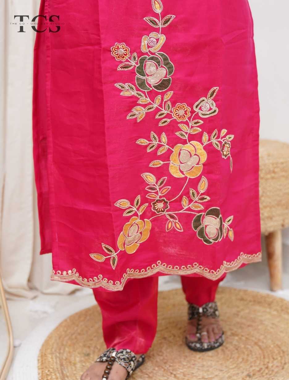 The Embroidered Satin Kurti Set is a graceful ensemble designed for elegant festive