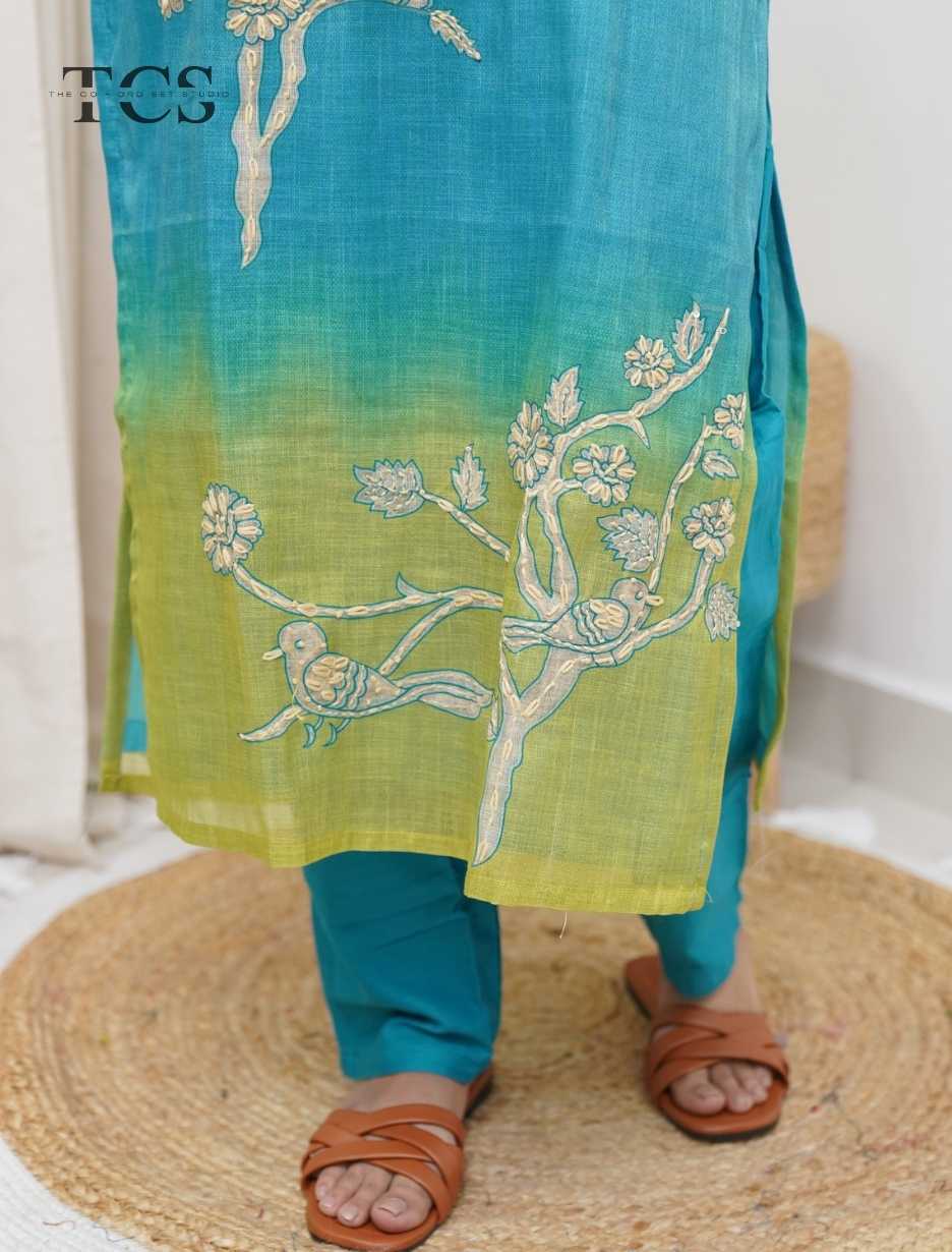 handcrafted detailing. The straight-cut kurti is made from premium linen fabric, offering a