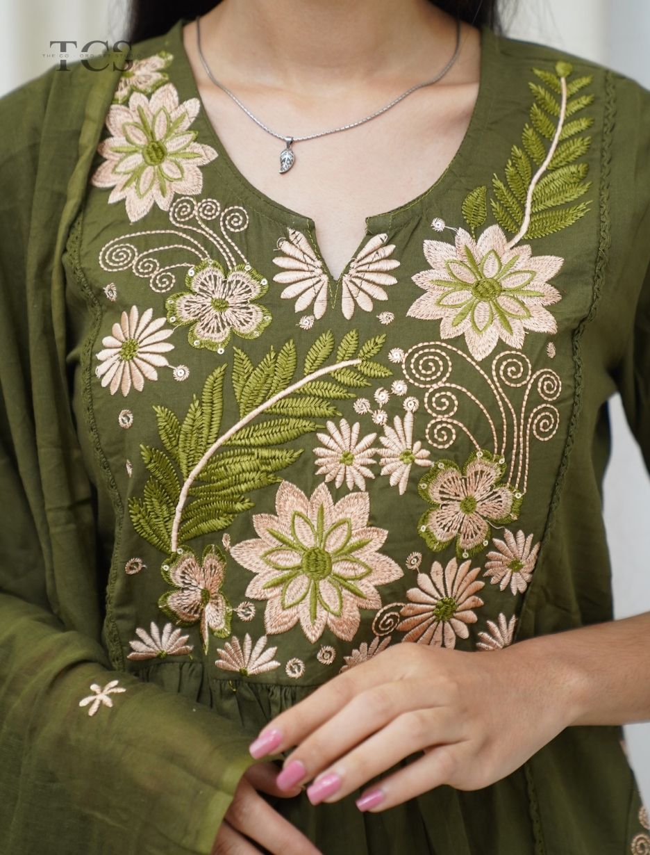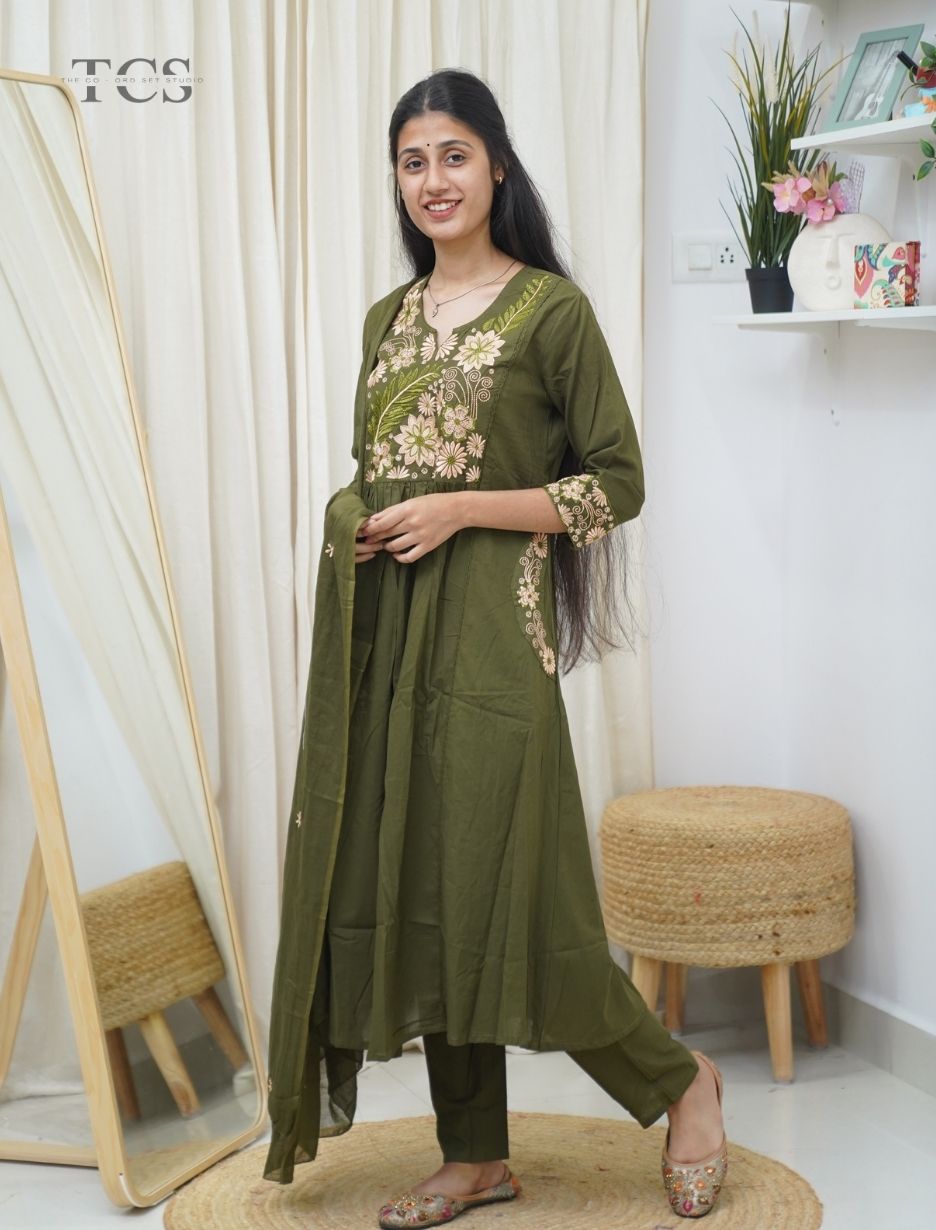 • Olive Grace Masakali Patch Cotton Kurta Set with Mul Dupatta
