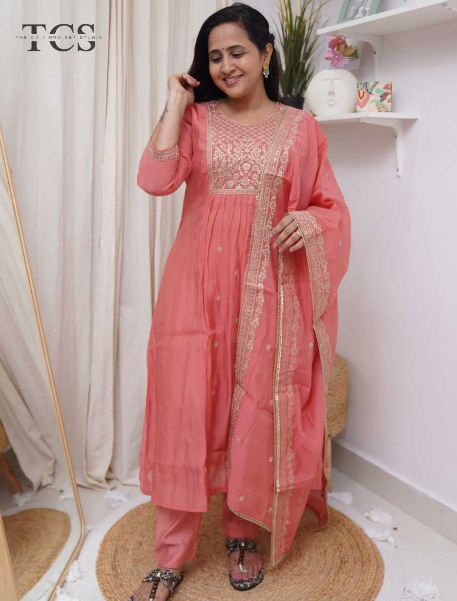 The Peach Zariya Mul Chanderi Kurti Pant Set with Dupatta is a beautifully crafted ensemble that celebrates delicate craftsmanship and graceful design. Made from lightweight mul chanderi fabric, the kurti, pant, and dupatta offer a soft, airy feel with an elegant drape, making this set ideal for festive mornings, intimate celebrations, and refined ethnic wear.