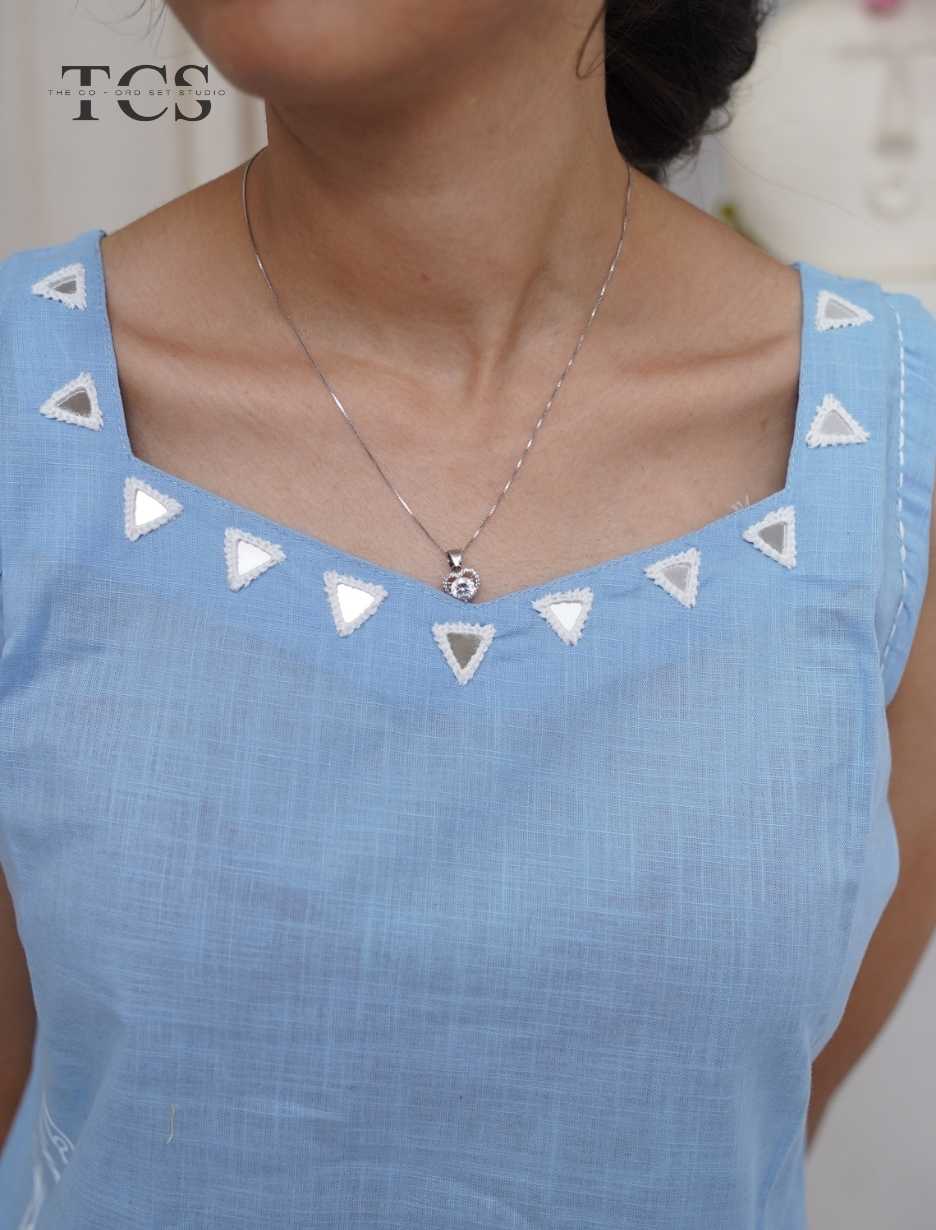 The highlight of the kurti is its beautifully detailed neckline, adorned with real mirror work and