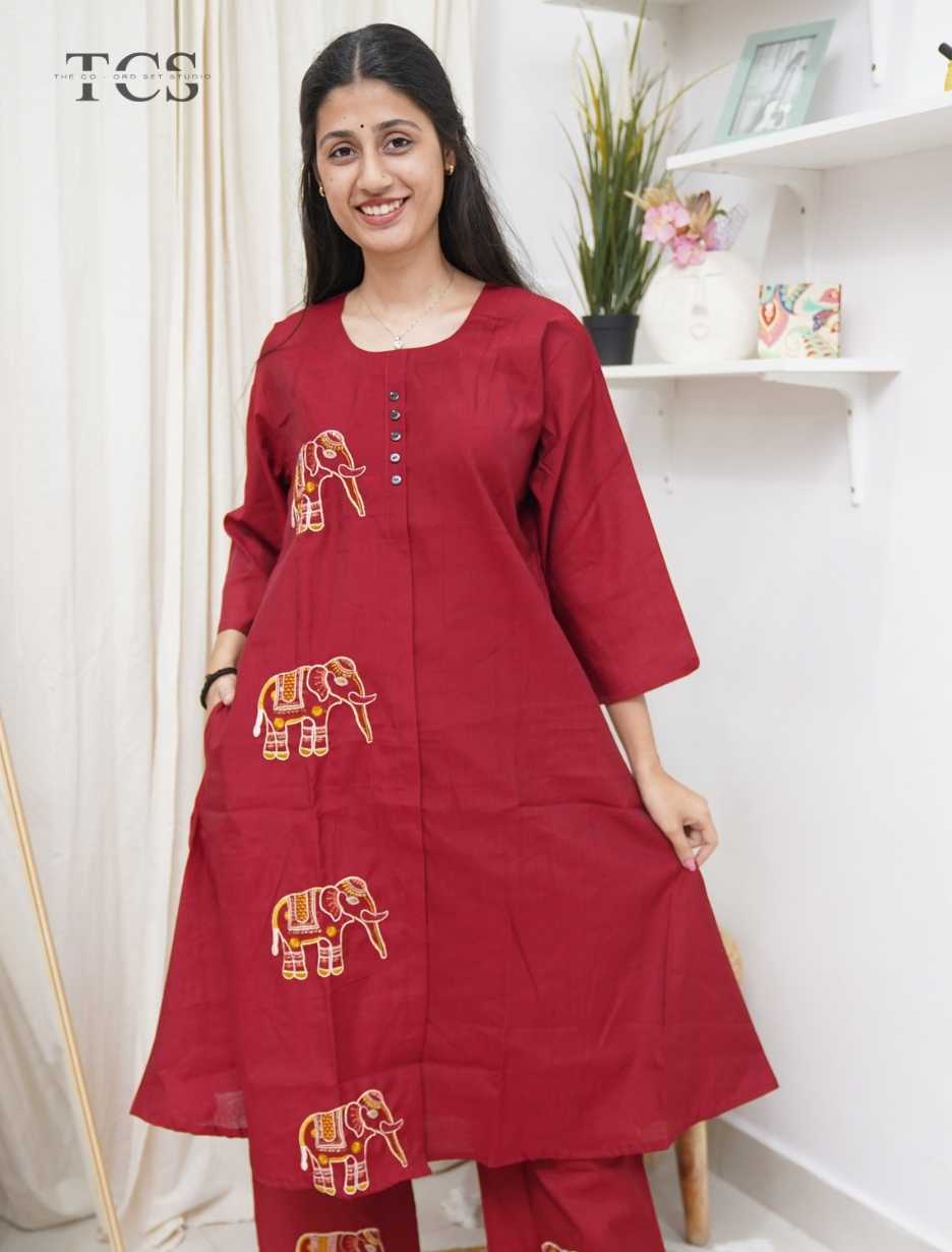 This co-ord set infuses your wardrobe with a playful, elephant-inspired design. Multicolored thread-embroidered elephant motifs adorn both the top and pants, adding a handcrafted charm to each piece. Soft viscose fabric drapes lightly, offering comfort and breathability for warm days at home or on a casual outing. The round-neck top is accented with decorative buttons and a handy pocket, while the fully elasticated pants ensure an easy, relaxed fit. Available in six vibrant colors, this co-ord set lets you express your cheerful style whether you’re lounging at home or stepping out with friends.